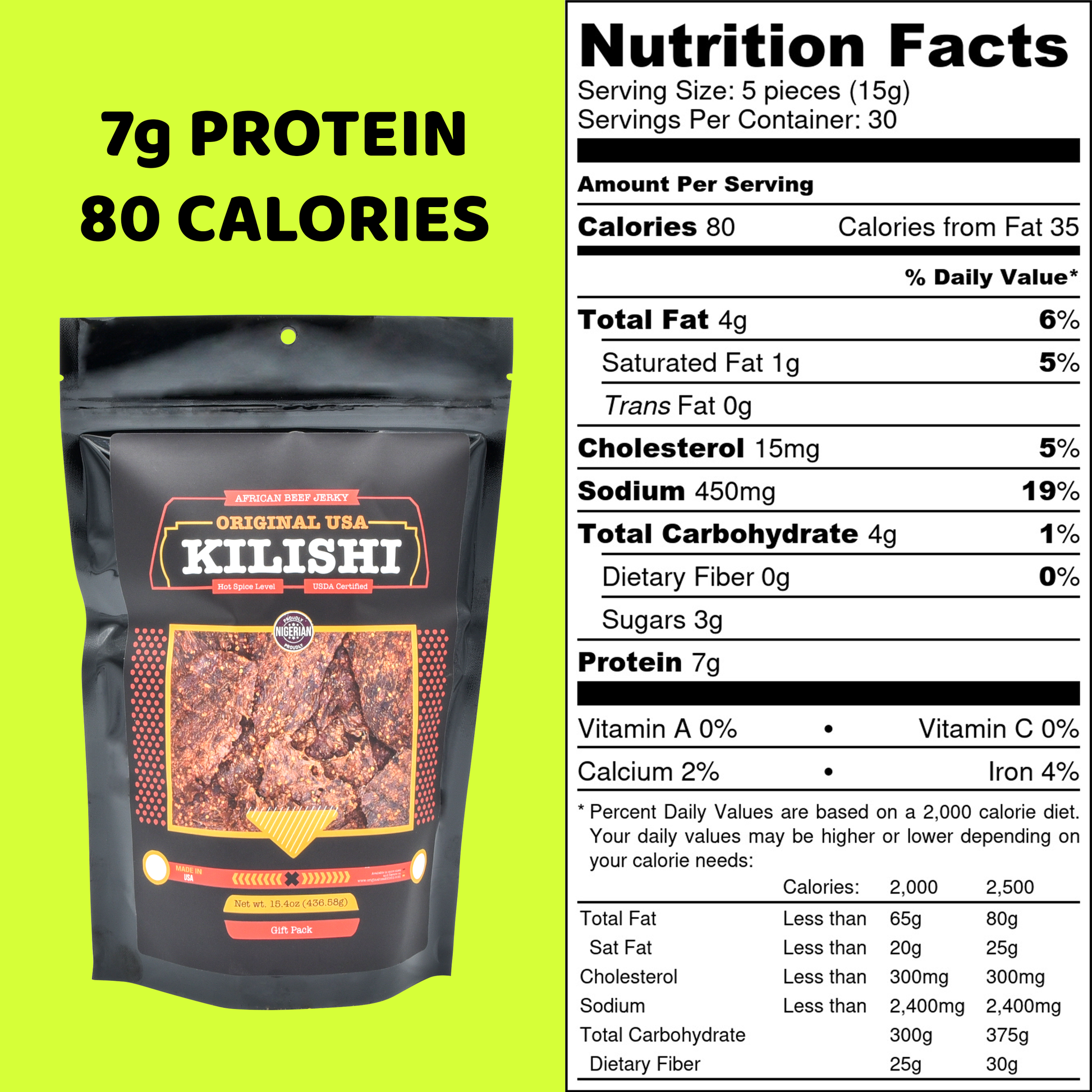 Original USA Kilishi is the iconic beef jerky of Northern Nigeria, crafted in the USA for an authentic taste of home. This 15.4 oz / Gift Pack hot kilishi pack is made from 100% beef and seasoned with a unique Northern Nigerian spice blend.